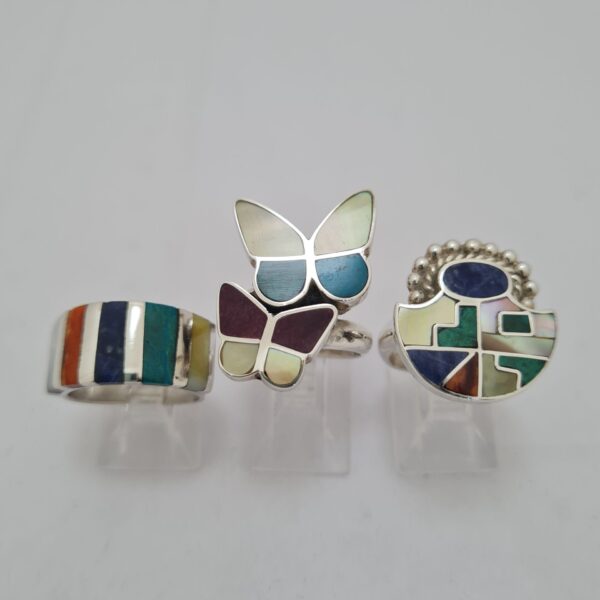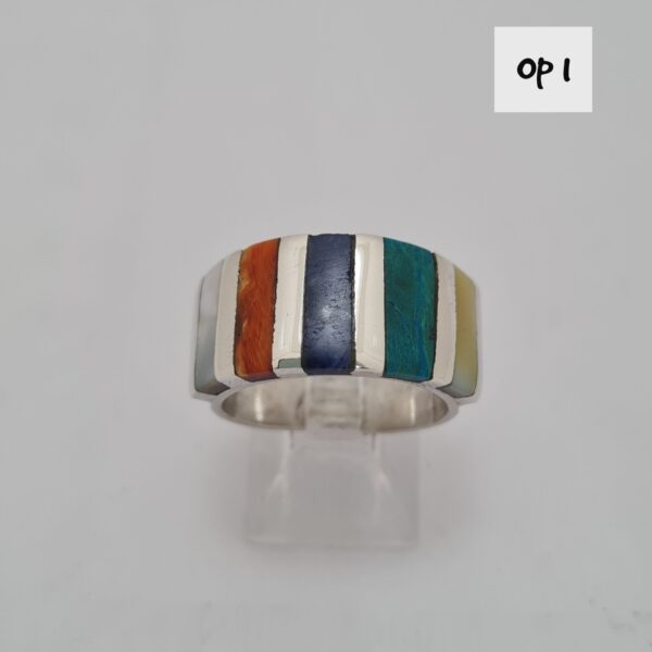 $27.246 ARSAnillo plata ónix, raíz de rubí, raíz de esmeralda y marquesita n°12