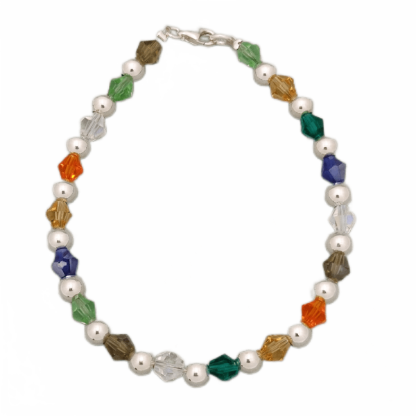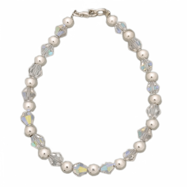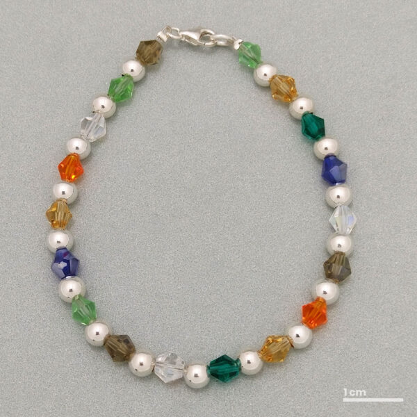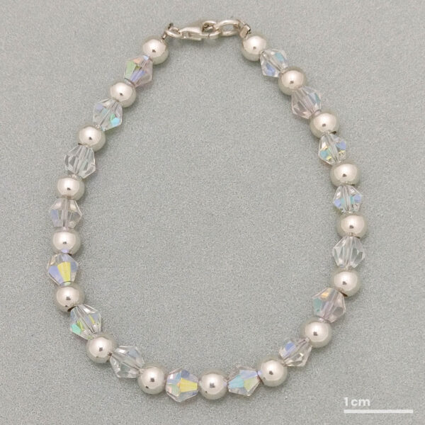 Pulsera denario, cristal checo, bolita italy 2mm, dije virgen milagrosa.