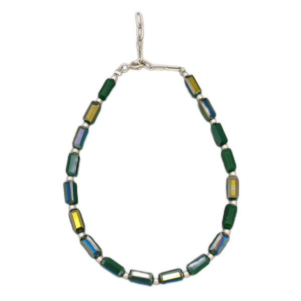 Ristal rectangulo facetado, bolita italy plata 925 Ø 2mm, Palace green opal